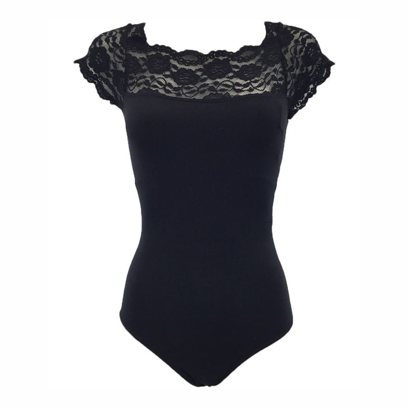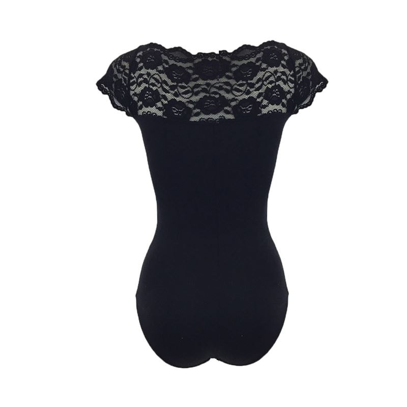 So Danca Adult Black Lace Boat Neck Leotard
